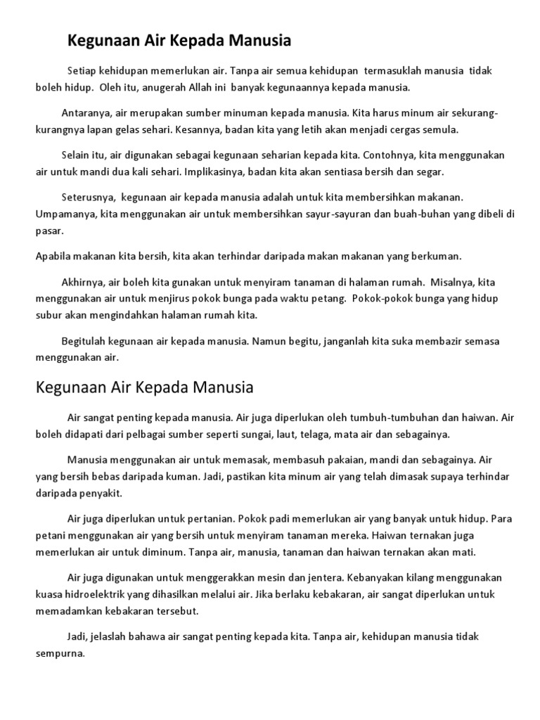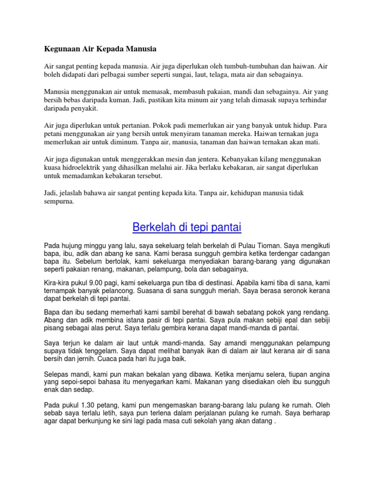 Contoh Karangan Upsr Kegunaan Air Kepada Manusia Pdf
